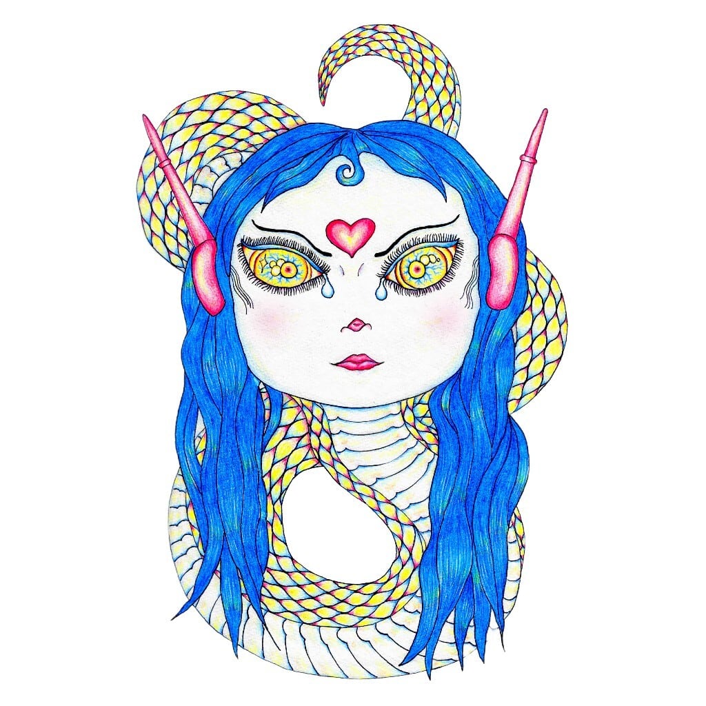 「レビアちゃん」はそのレビ族の龍の少女としての姿です。縁結びにより生まれる新しい御霊を蔑ろにするものを戒める有難い神様です。また寂しがっている水子の魂と友達になって面倒を見てくれる優しい側面もあります。
