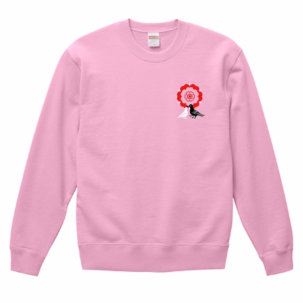 英国のテューダー・ローズと八幡鳩と八咫烏をモチーフにした、LUNMUオリジナルの神紋「八十八」紋のクルーネックスウェットです。